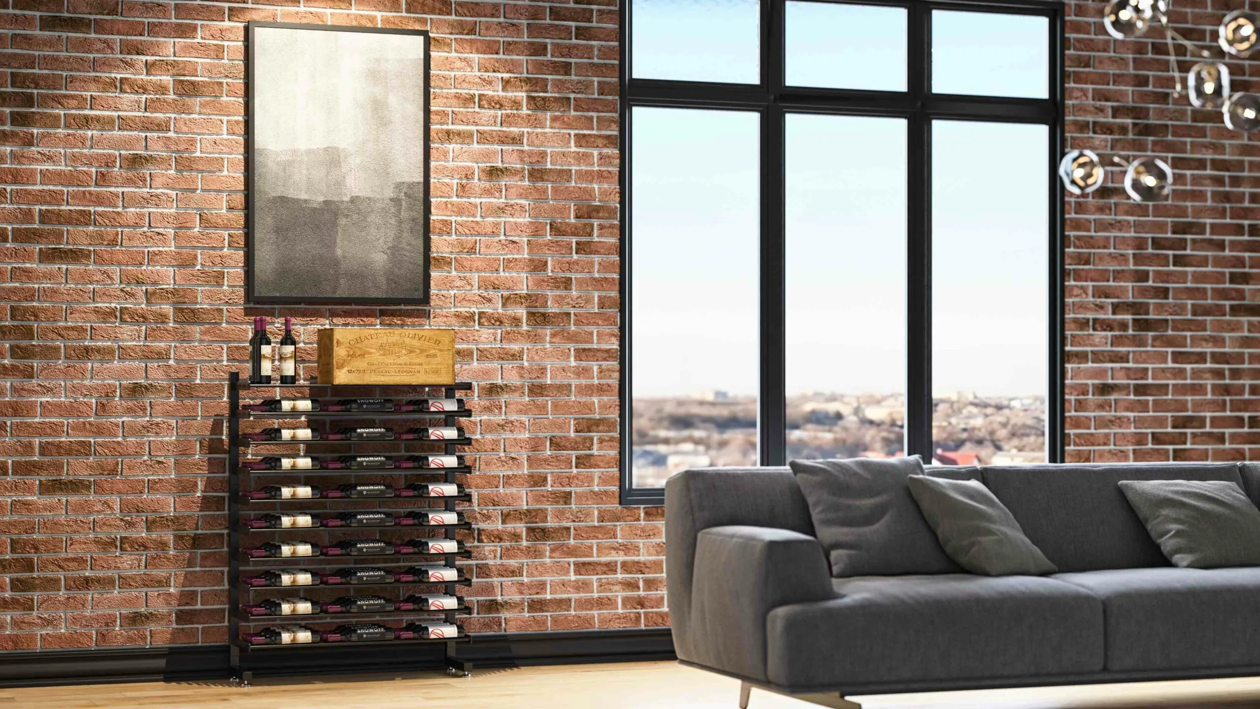 Using our patent-pending 10’ Post system, the Wine Wall can be installed in floor-to-ceiling applications up to 6 total bottles deep (two sided) and up to 122” in height.