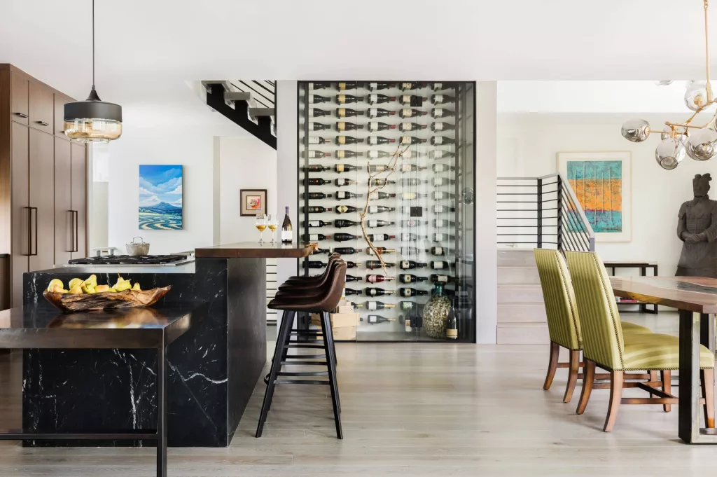 Hygge designs are often simple, with no overbearing details or frills. The lightness felt in hygge designs can very easily transfer into a wine room— try sticking to a uniform color scheme by matching your wine rack finish with other hardware.