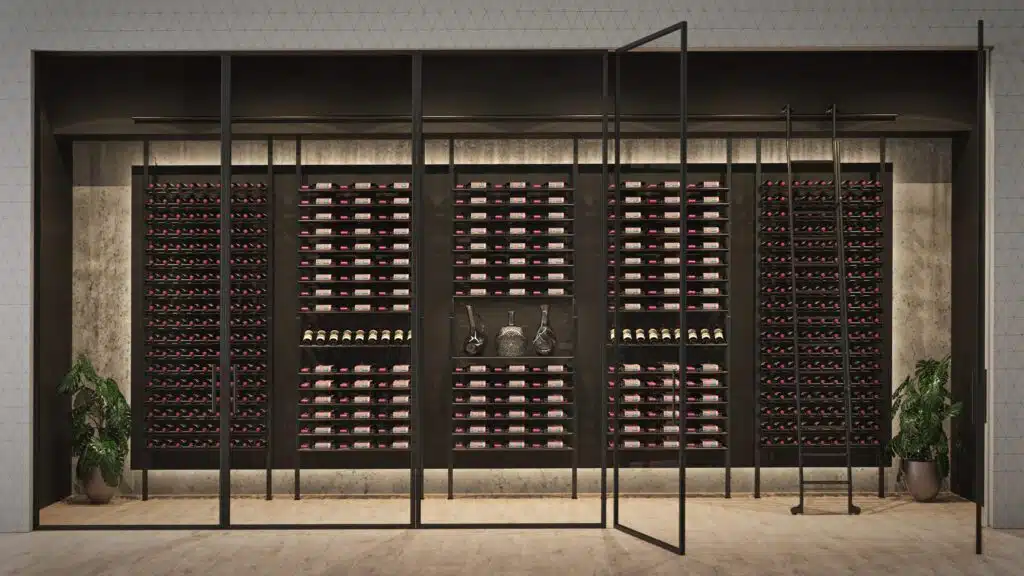 For that reason, it’s best to design a wine room with horizonal storage so clients know they can store wine safely for years regardless of enclosure type.