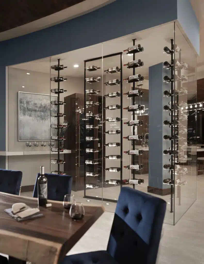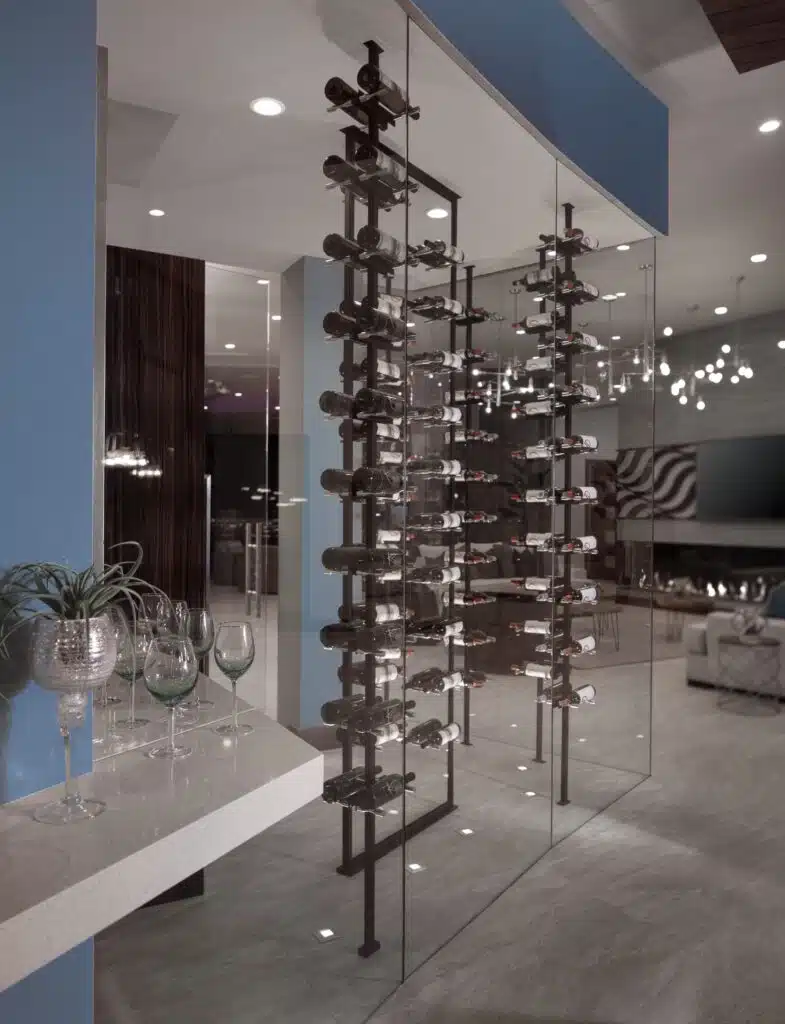 Tucked away in the heart of Fort Myers, Florida, is an absolute showstopper – a glass-enclosed wine room that's as functional as it is fabulous, thanks to the brilliant minds at HLevel Architecture. It effortlessly blends into the open living room, creating the perfect nook for unwinding by a cozy fireplace with a glass of your favorite wine on a crisp evening. But here's the real magic: the wine cellar design itself. It's not just a storage space; it's a living piece of art. With the sleek and chic Vino Rails and the ingenious Vino Series Post system, it transforms wine storage into an exquisite showcase, inviting "oohs" and "aahs" from wine lovers and design aficionados alike. It's the ultimate fusion of sophistication and functionality, making it a conversation starter that's bound to impress even the most discerning of designers.