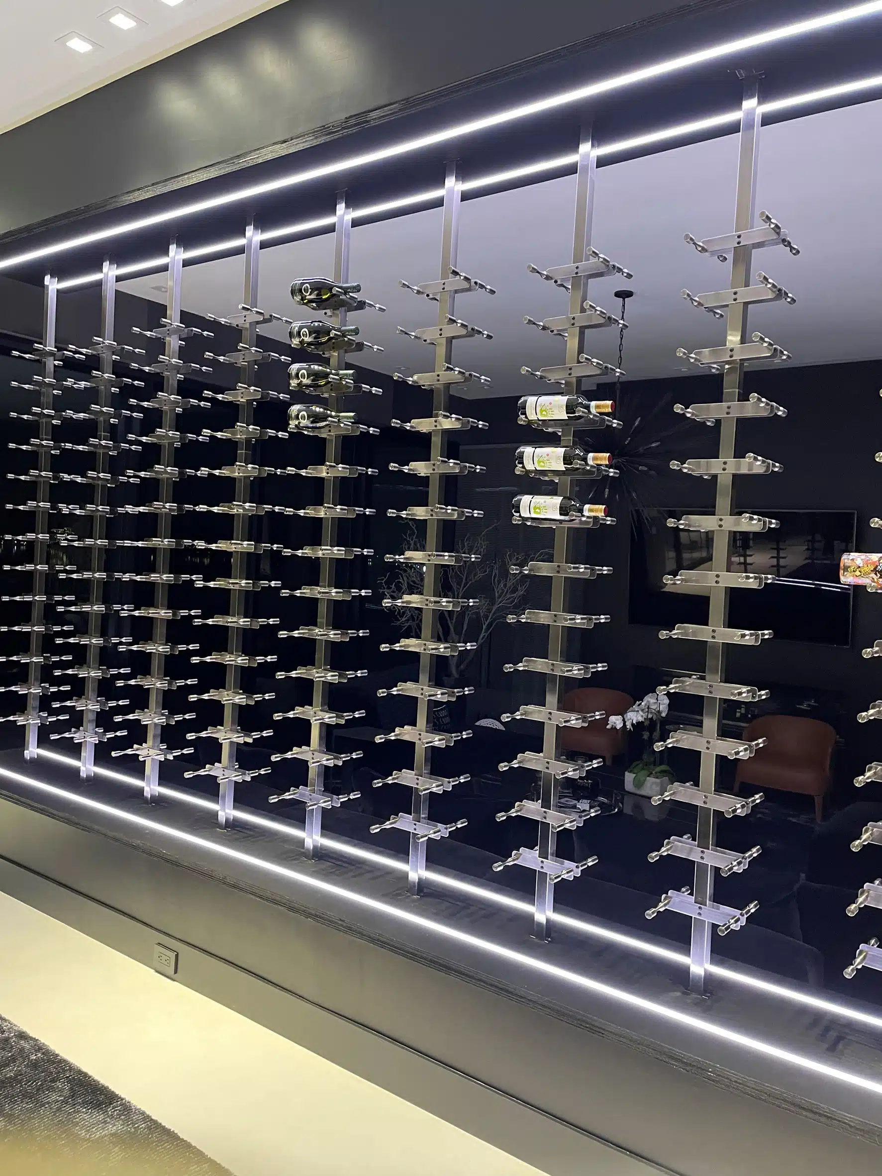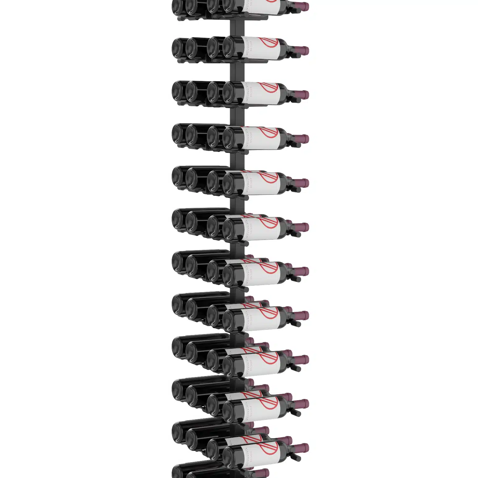 Easily display your wine collection anywhere with the Vino Pins Floating Wine Rack Kit, featuring our patented Vino Pins metal wine pegs and companion framing system. This two-sided configuration is perfect for displays against glass or that divide rooms. Constructed of commercial-grade steel, the Floating Wine Rack Kit comes with everything you need to assemble a single-sided wine rack column.