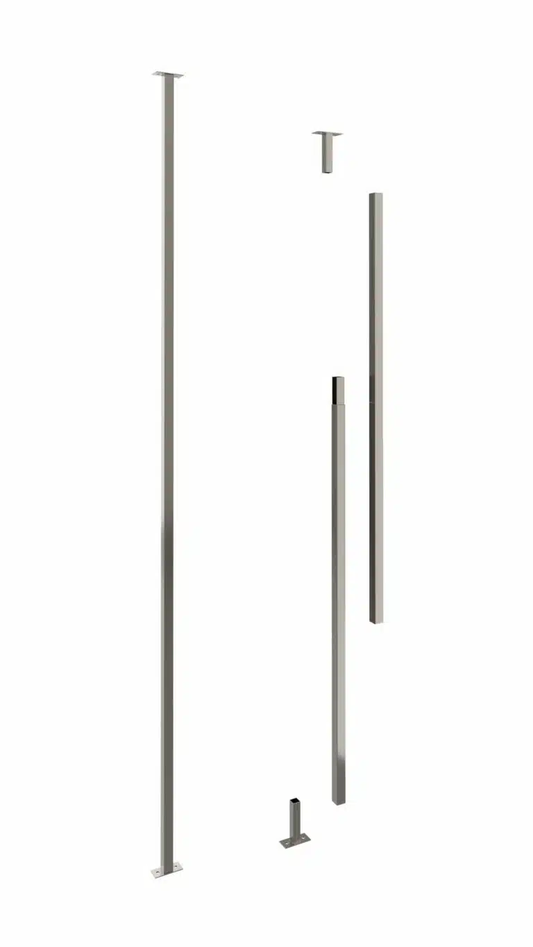 DIMENSIONS: The Post is a two-piece system constructed of 1.5"x1.5" steel, extending 120" in height (cut down on site to fit ceiling height).