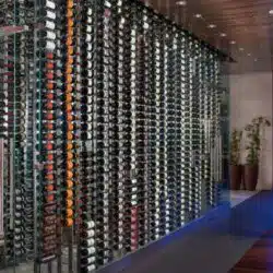 The W Series Wine Rack Frame 10 allows the installation of our ground-breaking label forward racks through ceiling and floor mounting to create floating wine rack displays in commercial and residential projects. Off-the-wall mounting provides a versatile design enhancement to build room dividers, allow wine walls to press against glass, and help install racking in front of high-end tile or other materials that make wall mounting difficult.
