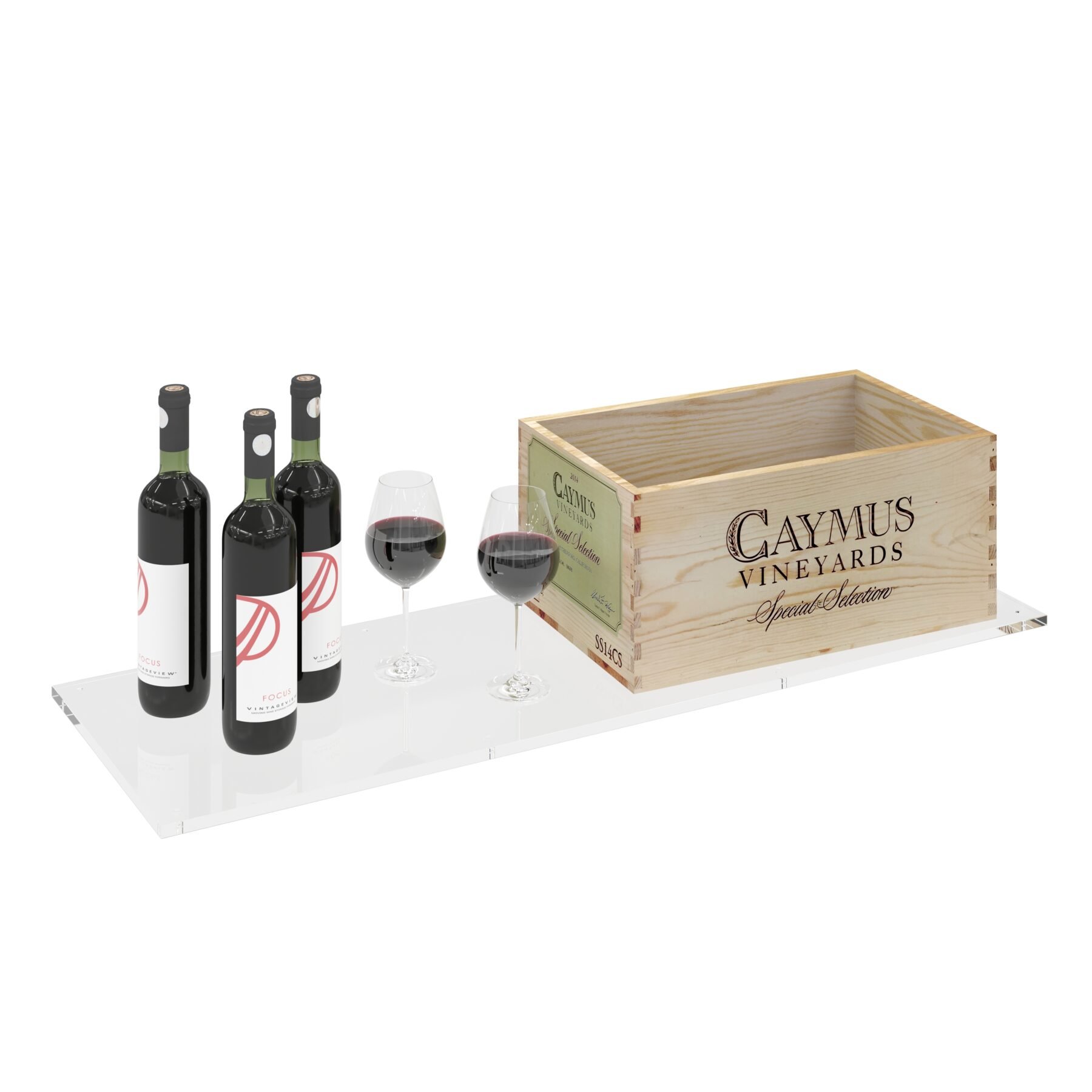 A triple-column, clear acrylic shelf for creating a gallery-style, upright display of your best bottles.