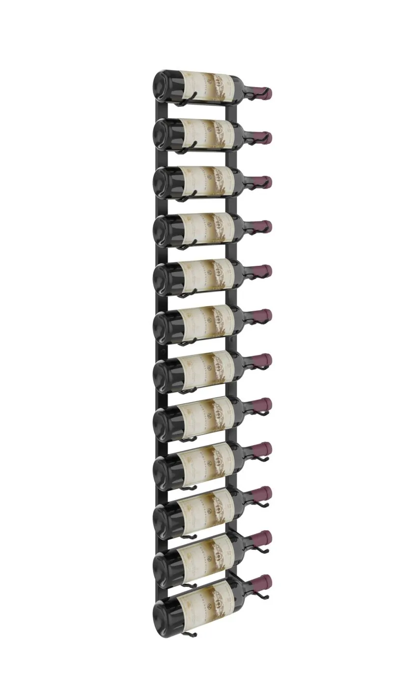 The W Series 3 is a 9-bottle tall, wall mounted wine rack that opens any wall to modern, label-forward design. Three-feet tall and available in three bottle depths, our metal wine rack fits onto just about any wall, with ample height to fill open rooms with contemporary style while maximizing storage potential. Our W Series wall mounted wine racks are stackable (using supplied couplers) and may be cut, allowing multiple configurations for any wine room project.