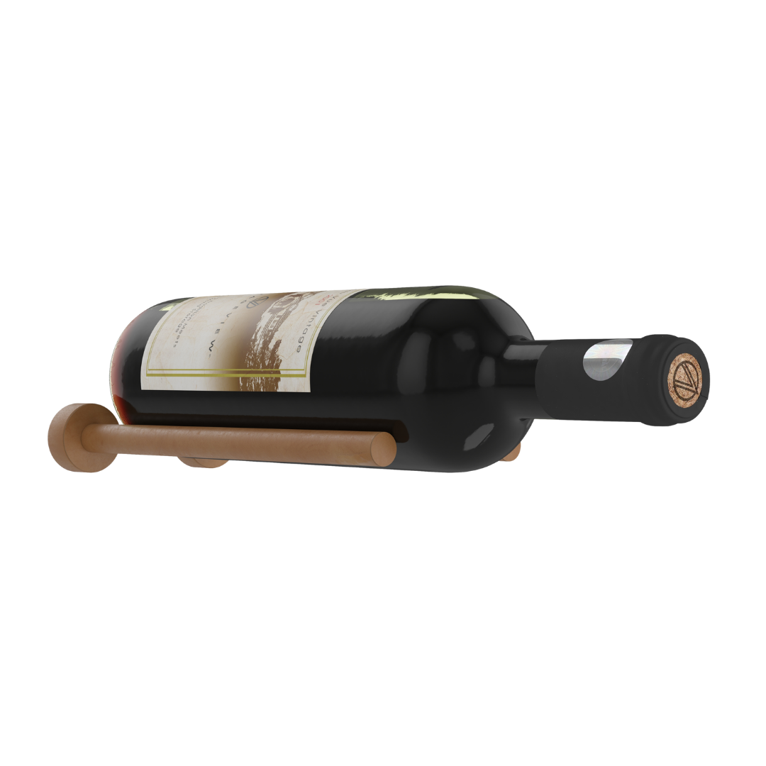 DIMENSIONS & BOTTLE CAPACITY: 5” (13cm) x 3” (8cm) x 13” (33cm) with bottle stored. Holds (1) 750ml wine bottle capacity, cork-forward. Add multiple Vino Rails wine racks to complete your look.