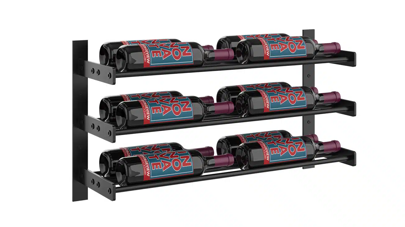 VintageView’s Evolution Wine Wall system is a modular wine rack that blends contemporary label-forward design with smart functionality perfect for home and commercial wall-mounted storage projects, small to large. This stylish system uses steel Wine Rods to hold standard, Champagne, Pinot Noir, or magnum bottles — all in the same row. VintageView’s proprietary design allows for sturdy installation — using commercial-strength steel supports — into both drywall and wood-backed surfaces. Perfect for your everyday drinkers or your valuable Bordeaux vintages. Available in three standard bottle depths.