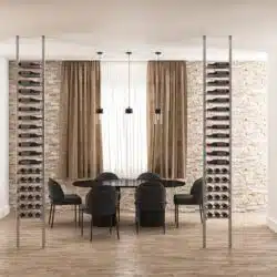 DIMENSIONS & BOTTLE CAPACITY: 120″ x 1.5″ x 1.5″ (without bottles; cut to fit height on site); with Evolution Low Profile components (sold separately) holds up to 189 bottles (750ml, Champagne, 1.5L). Top mounting can extend 2" outside of Post for a max installation height of 122".