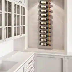 The Helix Single 60 is an innovative 12-bottle wine rack kit that holds standard, Champagne, and magnum bottles on a wall or post as if floating on air. The superior design of VintageView’s wall-mounted wine rack offers maximum strength and efficiency, with elegant curves to add additional visual interest. This wine rack looks almost as good without the bottle.